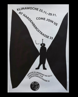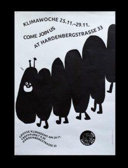 EN This series of posters promoted the Climate Action Week in the main building of the UdK. We wanted to find a simple language that reaches as many people as possible. The posters are printed on the back of old, no longer needed UdK posters that would otherwise have ended up in the waste paper.