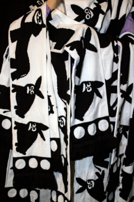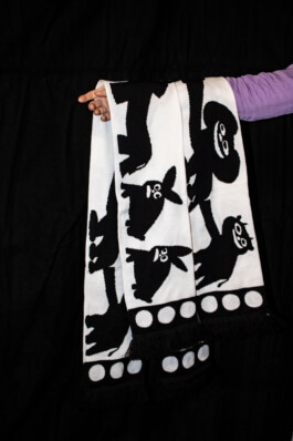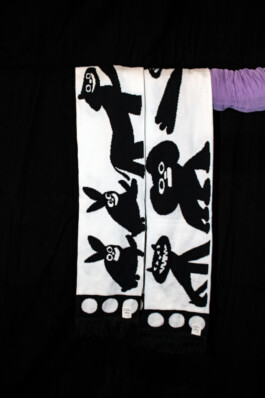 It's a spring scarf, in this time everything changes. on one side of the scarf happy animals, on the other unsettled ones. The change from winter to spring.
